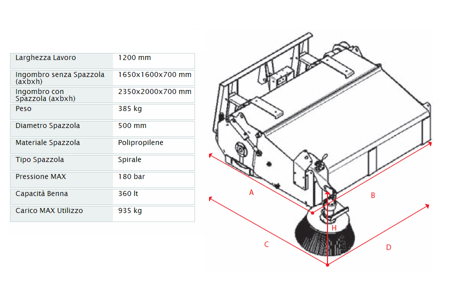 Schema Dimensioni della Benna Spazzatrice Edilzeta - BSP 150.