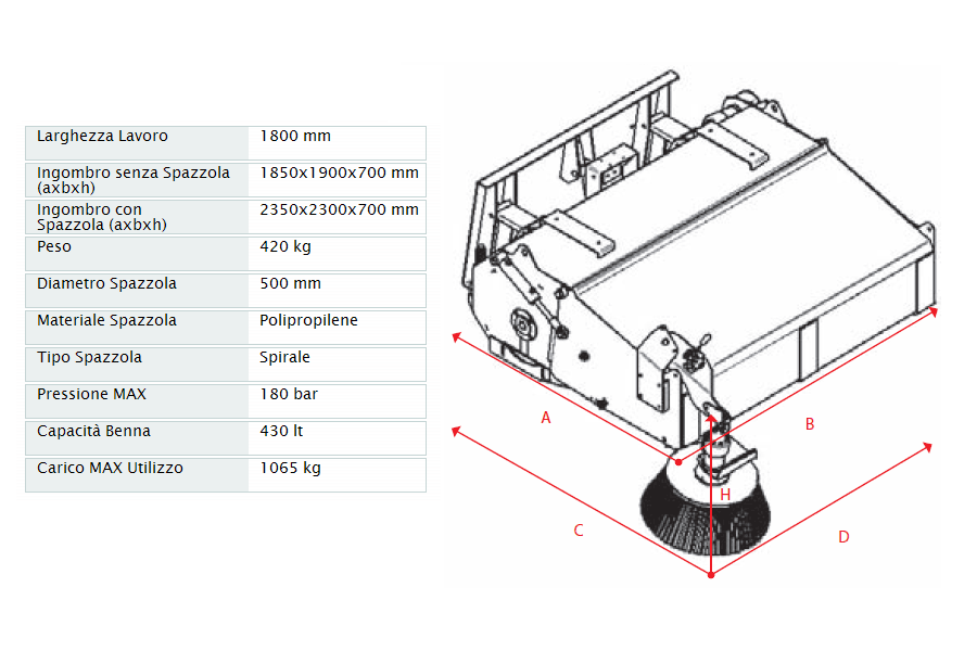 Schema Dimensioni della Benna Spazzatrice Edilzeta - BSP 180.